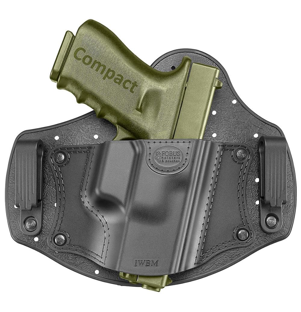 Tighten your belt to a point where you can feel retention when holstering, but the pistol can still be holstered without hitting the holster shell. Important: IWBM is a universal holster for medium-size pistols. It is not designed for a specific pistol but for multiple pistols, and does not have a standard passive retention mechanism holding the pistol. Retention is achieved by pressure of the belt on the holster when on your body; therefore, please refrain from inverting the holster when not on you. Your pistol will fall out.
